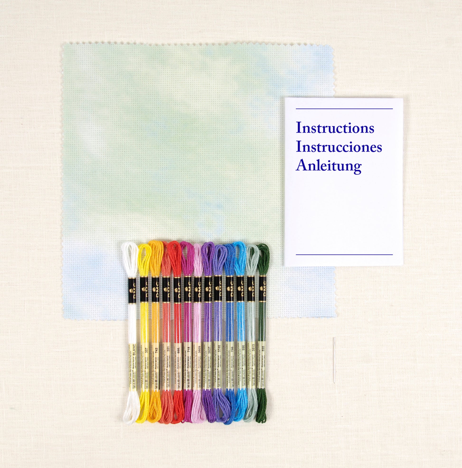 Et komplet sæt, der indeholder alt, hvad du behøver for at lave et lille broderiprojekt – ideelt for begyndere eller som et hurtigt og hyggeligt håndarbejde.