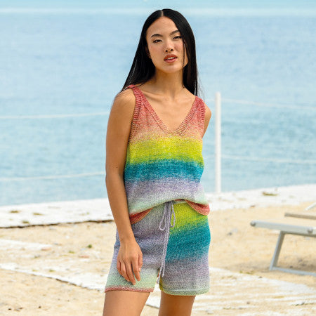 Fås i 6 livlige farvekombinationer – fra varme krydderier til solrige, tropiske nuancer – og denne naturlige fiberblanding skaber ubesværet, køligt tøj, der er perfekt til sommerstrikning og hækling.